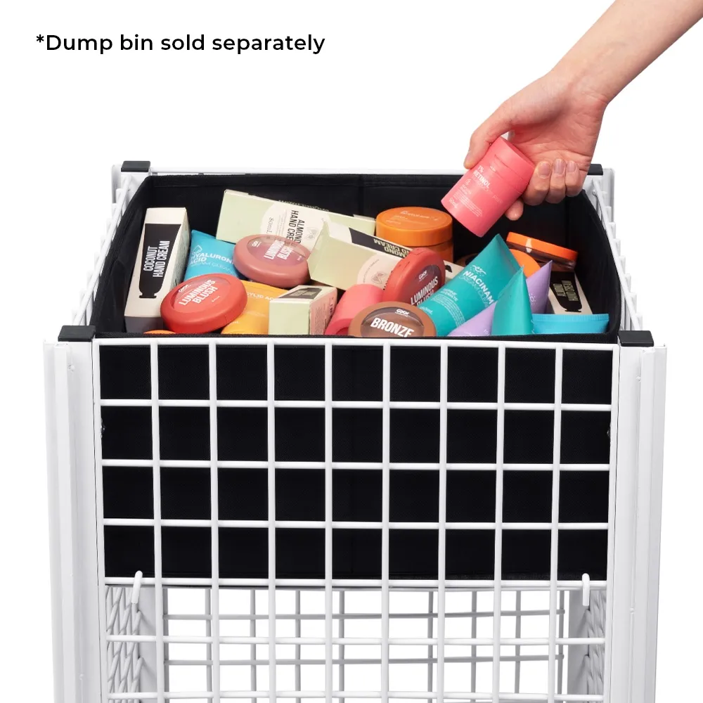 - Dump bin basket has solid bottom that prevents small items falling through gaps of a wire bulk bin