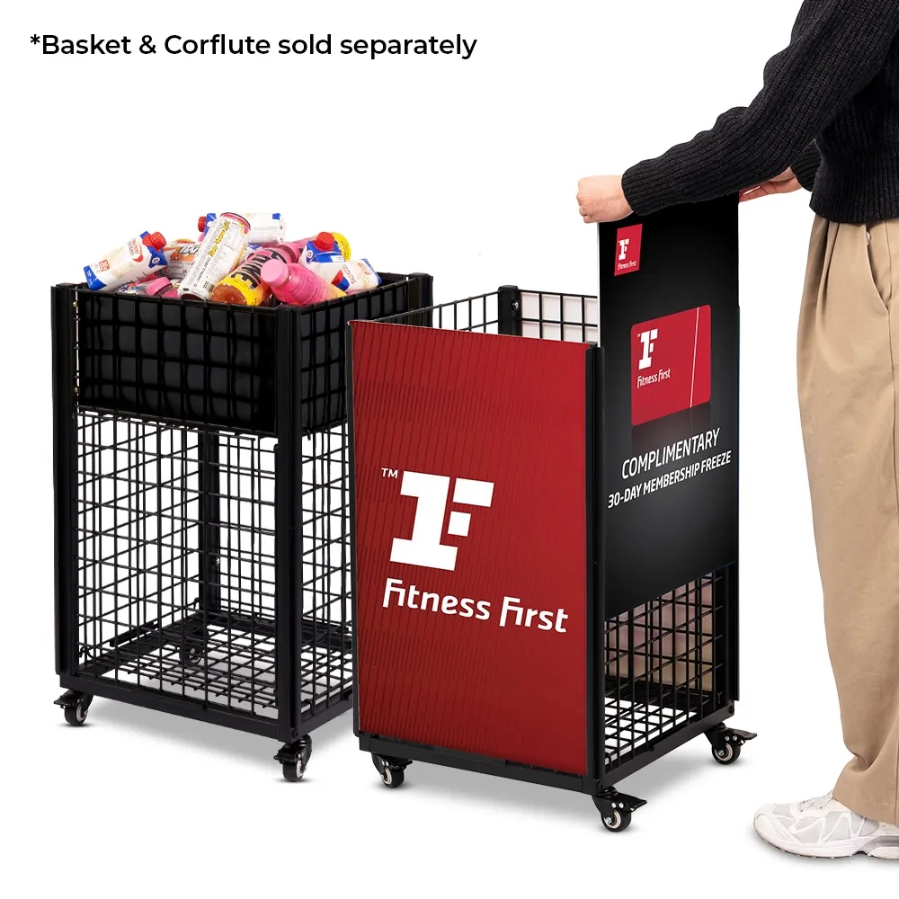 The square dump bin, like a mobile retail display stand, adapts seamlessly to changing merchandising needs across multiple sectors. Wheels enable effortless repositioning during store reconfigurations, while the lockable mechanism ensures displays remain stationary during peak shopping periods. Retail environments, sports retailers, and supermarket chains benefit from the additional storage capacity that keeps backup inventory within arm's reach. Corflute panels can be added separately for custom branding opportunities that enhance visual impact.