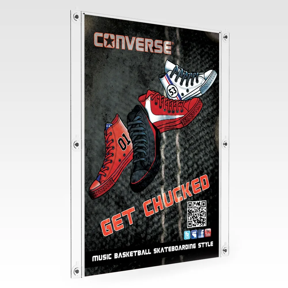 - Clear 3mm acrylic frame has magnets embedded to keep custom graphics in place
