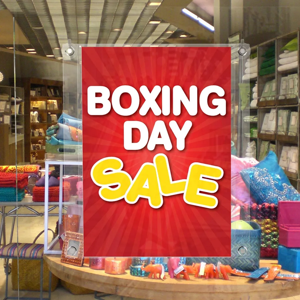 This shop window display, like a suction cup sign and hanging frames, uses 3mm folded acrylic to hold your display. This clear acrylic makes reading your signs very simple. The shop window display makes graphic changes very easy, with poster switches requiring less than 60 seconds!