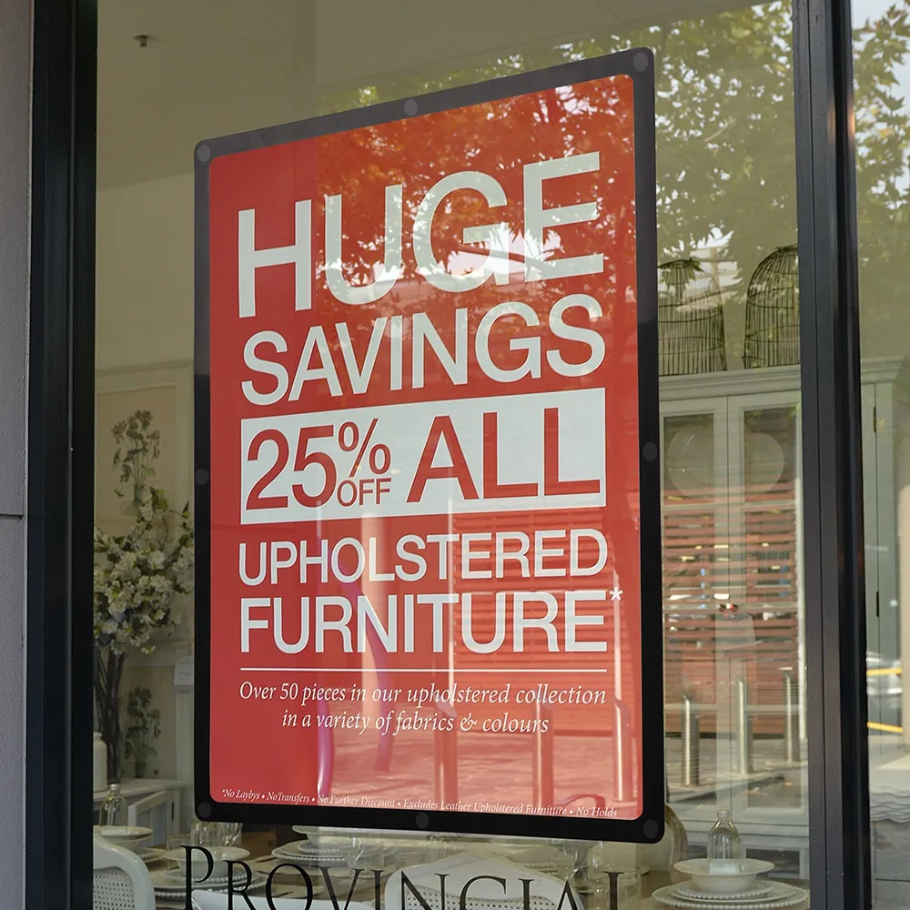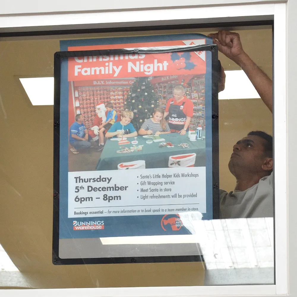 This wall poster displays is designed to be used on clear glass windows or doors as well. The frame allows posters to be placed on each side, helping maximise space and reach customers both inside and outside of your business. This style is popularly used in retail stores, event halls, universities, car dealerships, restaurants, and more. Order by 3pm AEST to receive same day despatch to your location anywhere in Australia!