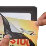 This poster frame, self adhesive sign holder is designed to hold A1 (594 x 841mm) posters in either landscape or portrait orientation! The posters fit within the frame and are held in place with magnets on the inside of the holder securing the frame to itself. This makes graphic changes easy with only seconds needed. Simply pull down one of the three magnetic sides, replace existing posters, and let the magnets reattach!