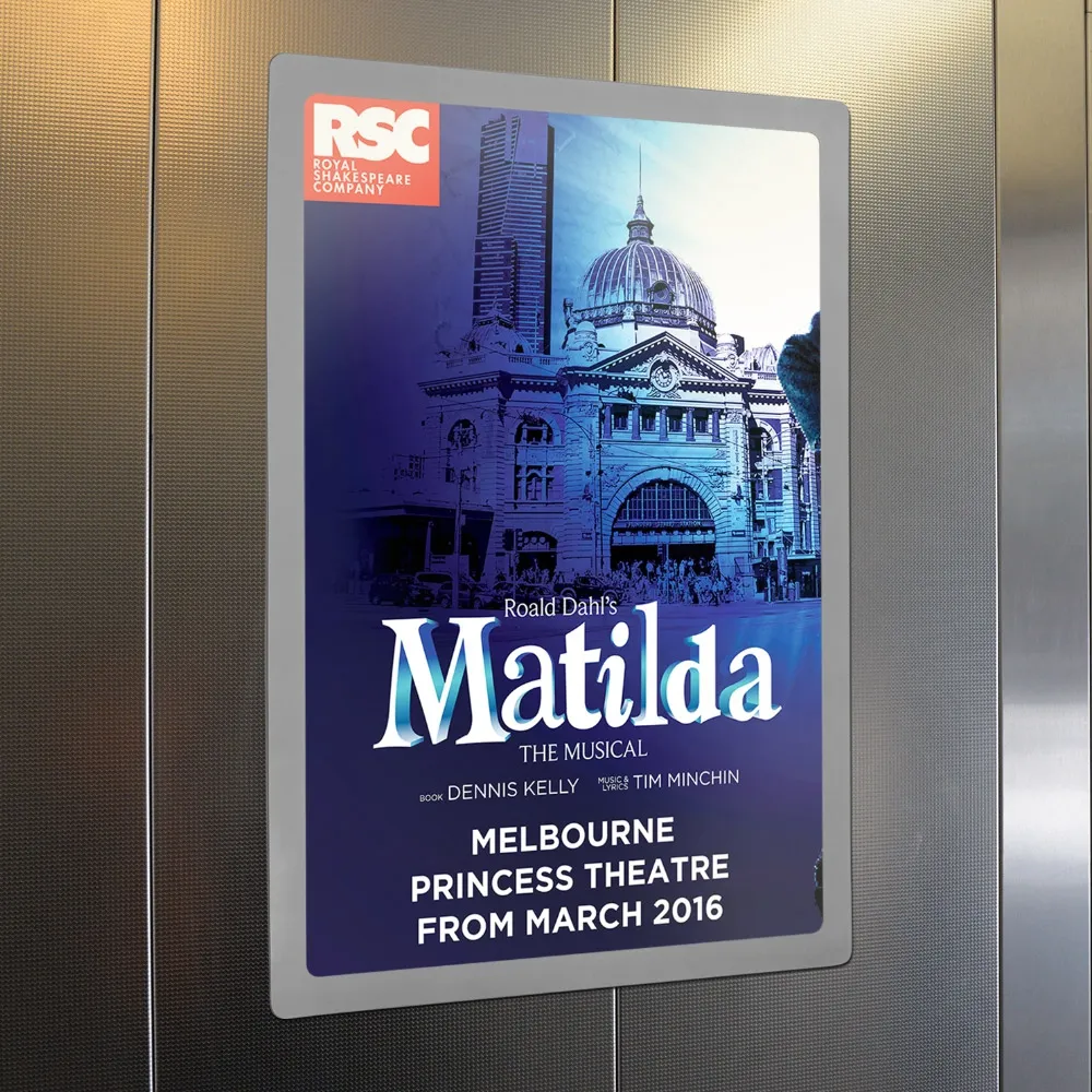 - Place A2 (420 x 594mm) posters in portrait or landscape orientation within frame