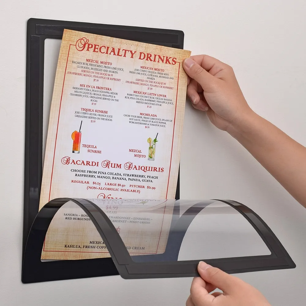 • Frame can be placed on glass for dual-sided use or put on non-porous wall surfaces