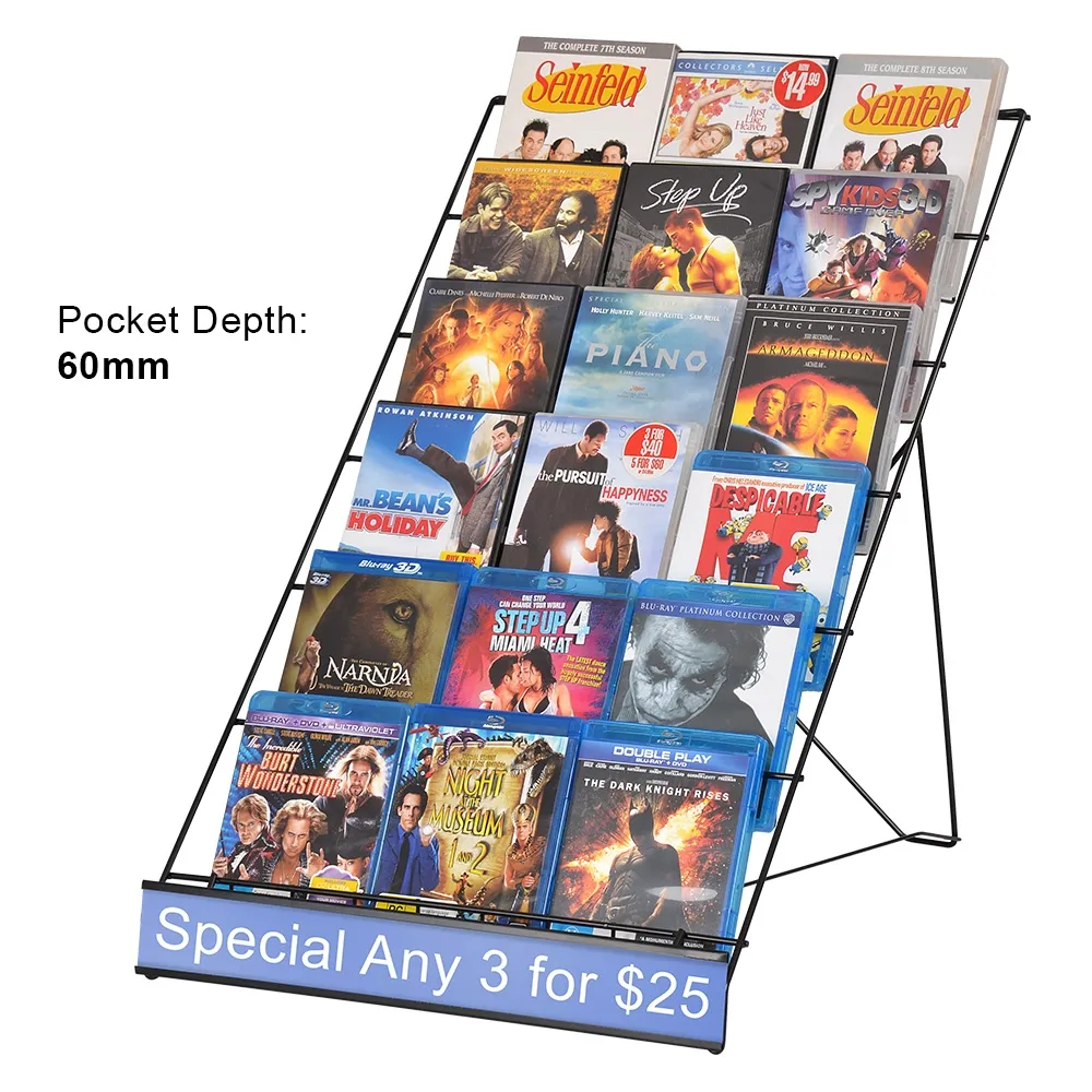 This desktop literature organizer has multiple pockets to display a wide array of brochures in one place! The tiered displayed can hold DL, A2, A3, & A4 standard sized brochures on each level depending on how you arrange, allowing this versatile stand to hold all your pamphlets with ease. The stand features (6) tiers to hold not only booklets, but merchandise such as DVDs, CDs, Blu-rays and more can be placed within the pockets to help move them at your location.