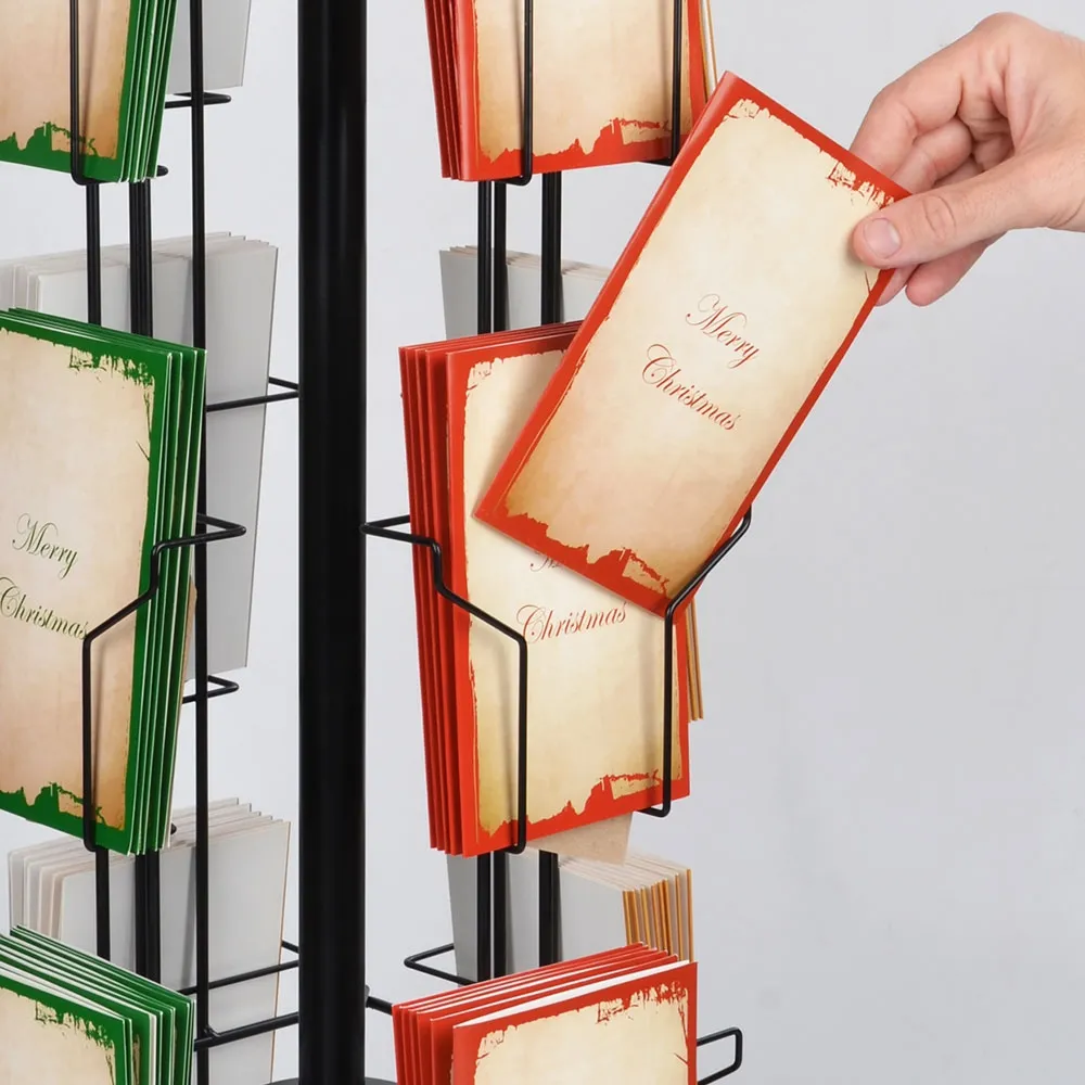 - Countertop greeting card display has (12) total pockets on (4) sides!