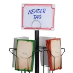 - Signage holder atop stand holds signs up to 1mm thick to show pricing or promos
