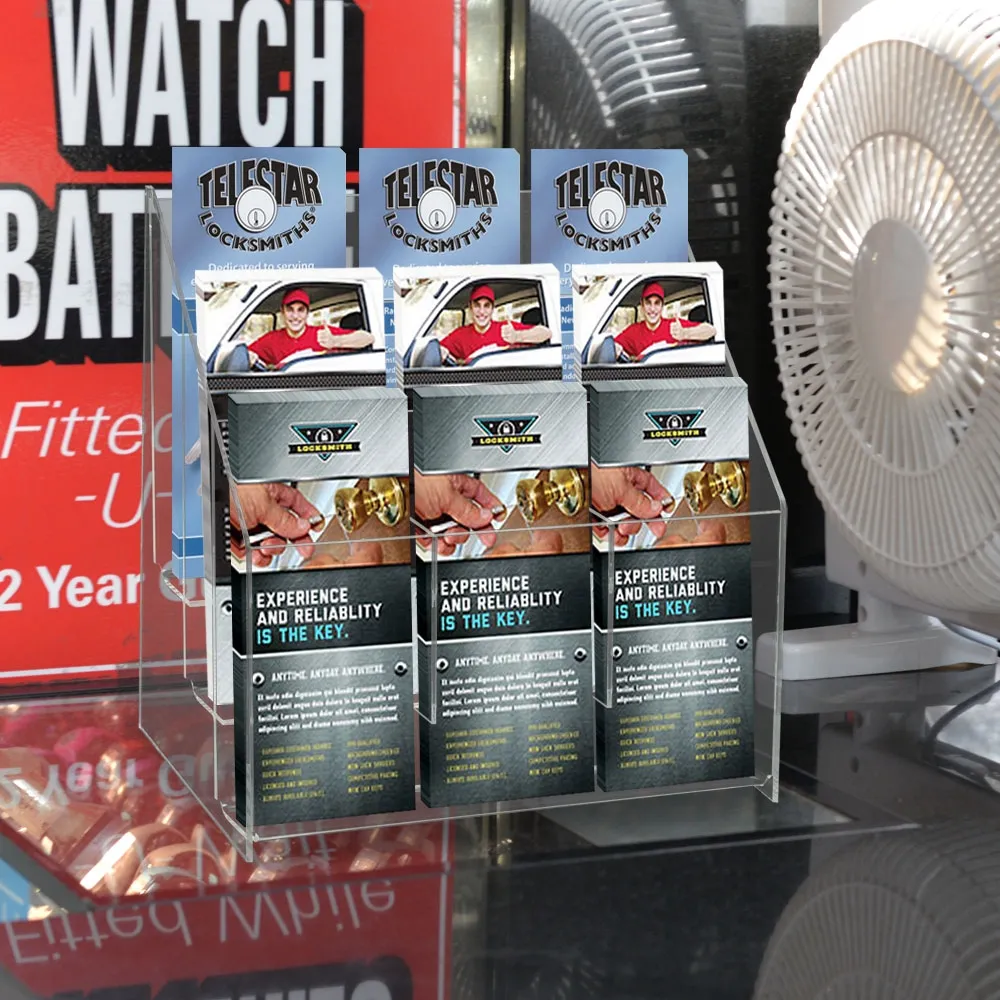 - Acrylic display clearly shows each leaflet, available at a low-cost whilst still being durable!