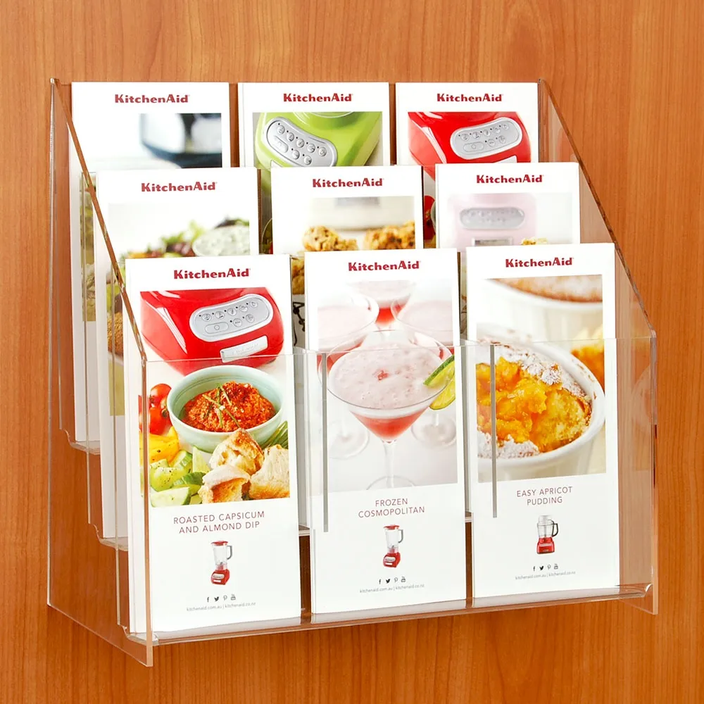 The acrylic literature rack, brochure wall display has a tiered design that allows each of the displayed brochures to easily be seen. With (3) rows to place your leaflets, each can be seen in order to allow customers to peruse the selection with ease. This design also allows mean the unit takes up less space but still offers heaps of leaflets!