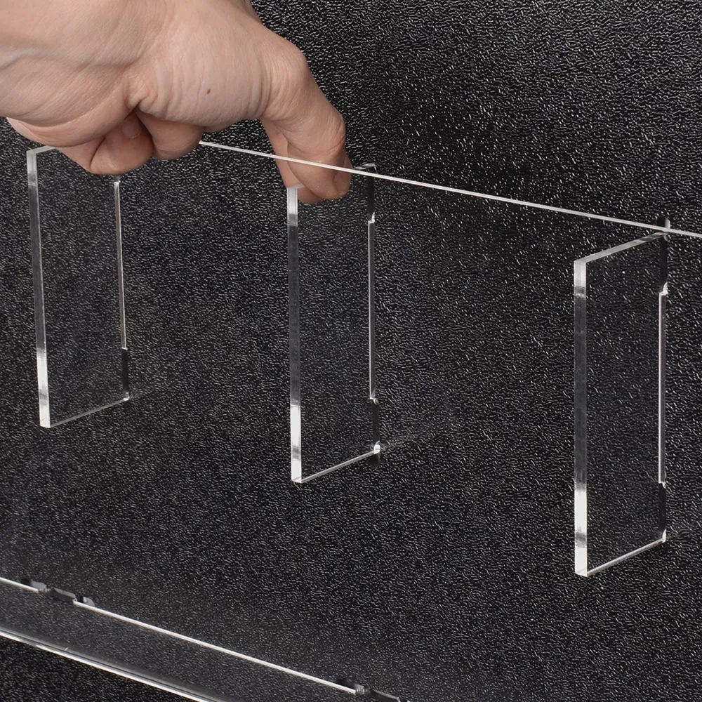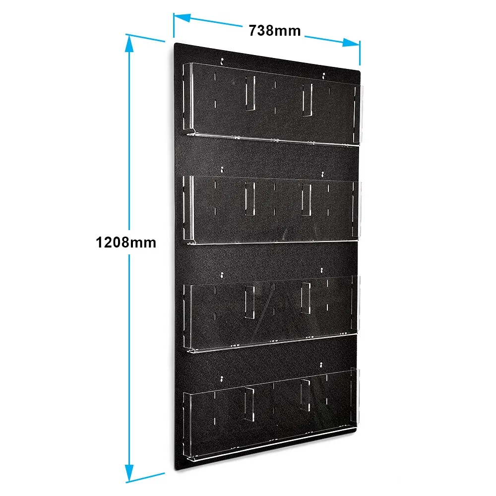 The most notable feature of these wall mount literature racks or A4 brochure holders is that they can display any combination of either A4 (297 x 210mm) or DL (210 x 99mm) material. The wall rack comes standard with clear 3mm acrylic pockets, but simply by snapping one of the supplied divider pieces into place, the pocket is then set up to hold two DL flyers. This ensures that no matter what literature you may have to distribute in the future, one of slimline brochure racks will have you covered.