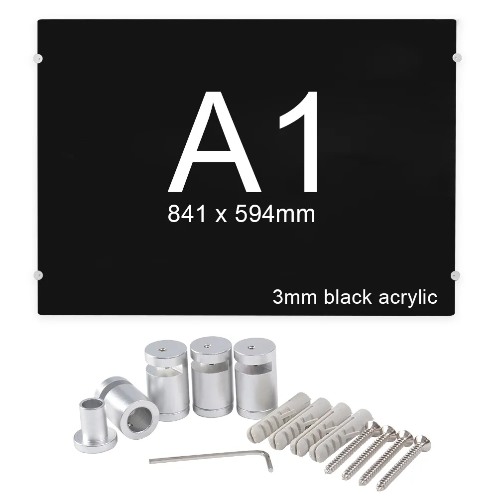 - 3mm Black acrylic is standard-sized A1(841 x 594mm) for plenty of writing surface