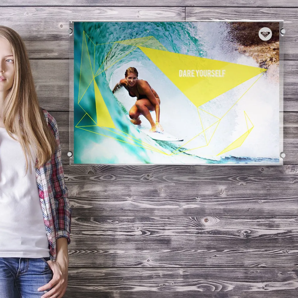 This acrylic standoff sign, wall sign displays an A1 graphic in landscape format. The acrylic holder uses button magnets to keep the top of the holder held together. This wall sign, also known as sign bracket hardware, makes changing out graphics simple. Pull open the two magnets, switch the graphics, and let the button magnets reattach. No tools are required. The sign bracket hardware includes the necessary wall anchors and screws for installation onto most surfaces.
