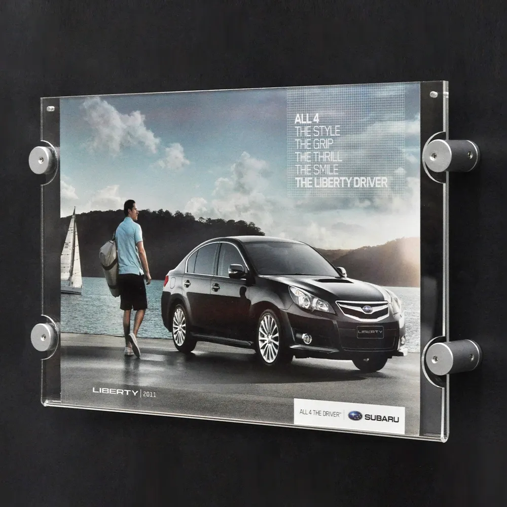 This standoff sign features button magnets on the top of the acrylic holder. These magnets hold the open pieces of acrylic together to create a stable sign. This standoff sign holds an A4 sized graphic in landscape orientation. The sign supports make graphics changes extremely easy. Pull the top of the acrylic down from the button magnets, pull out the old graphic, insert the new one, and you're all done! The standoff sign is great for use in hotel lobbies, offices, real estate agencies, movie theatres, and more. The sign supports are a great addition to any business' advertising plan.