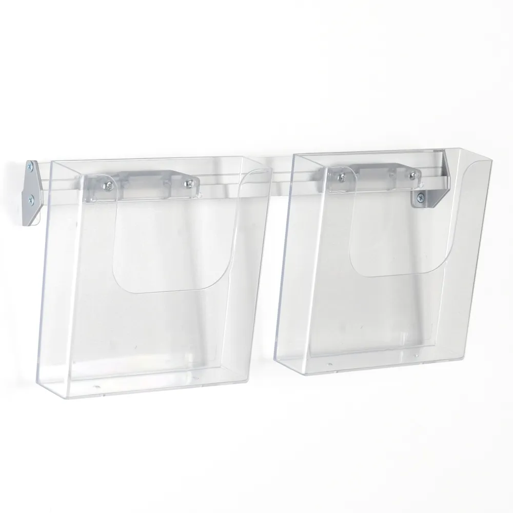 The literature rack, brochure wall display includes (2) acrylic pockets that feature a cut-out to easily access the displayed items. The angled pockets make it easier to read and take out an A5 (210 x 148mm) standard pamphlet, that is displayed in 35mm deep pockets.
