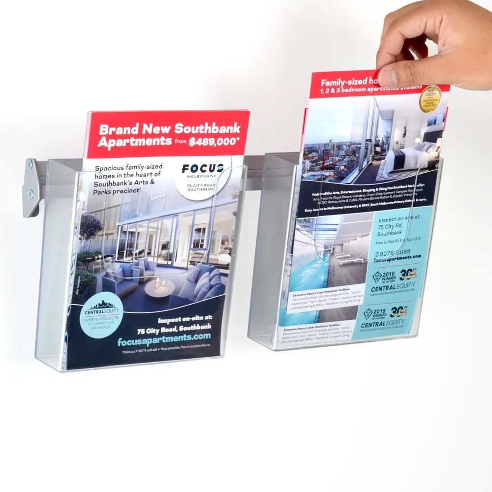 - Literature racks have (2) acrylic pockets that display A5 (210 x 148mm) standard literature