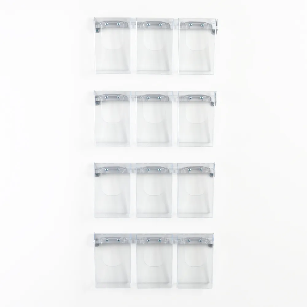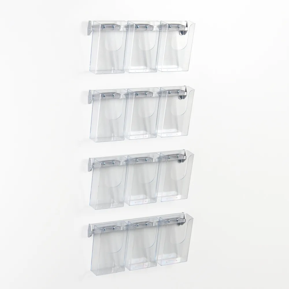 The wall mount acrylic holder, hanging brochure display has (12) acrylic pockets that you can place your literature in. These magazine holders can hold a large variety of pamphlets in one area, with the clear design ensuring passersby can see exactly what catalogue they are grabbing.