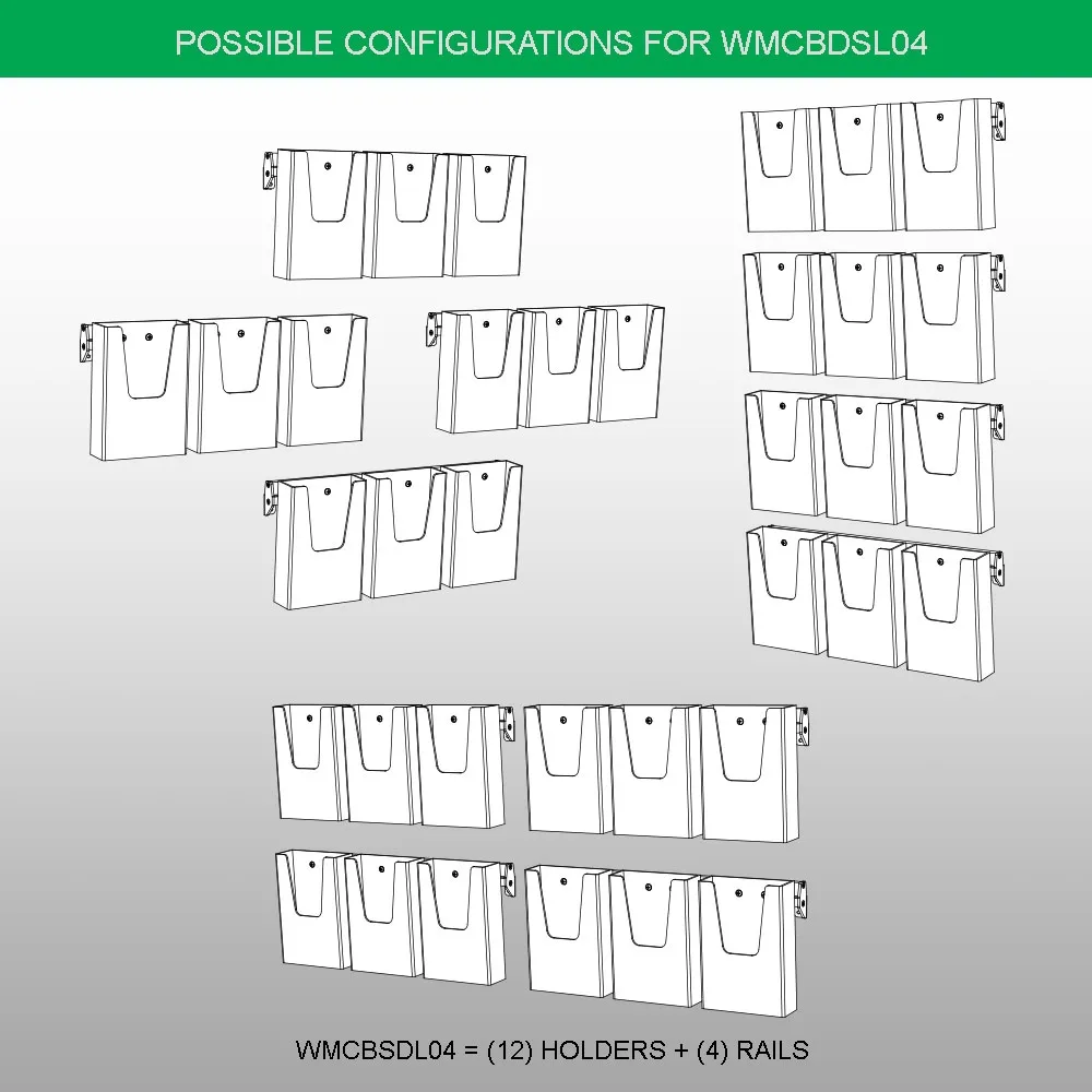There is a hardware kit included with these wall mount literature holders that will work with most wall surfaces. If unsure that the included hardware is right for your needs, please consult with a professional. There are various configurations available with these displays to fit different needs, including single row of 12, 2 x 6, and 4 x 3! Order these versatile display to help provide information at your location!
