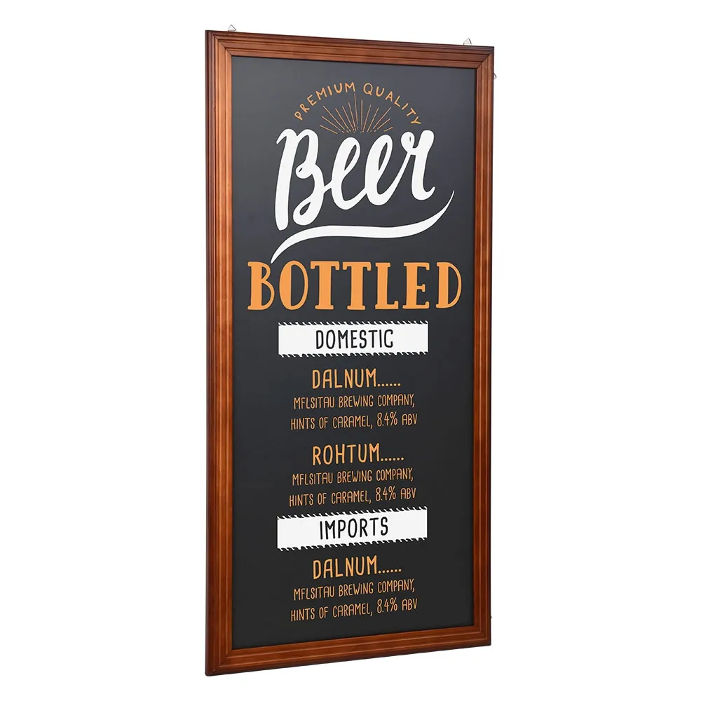 • Chalkboard wall menu has mahogany finish wooden frame for a stylish look