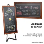 A chalkboard wall menu, one of many mounted blackboards on offer, helps you provide menu items, announce specials, show what's on and more using liquid chalk markers or chalk sticks on the textured black board! The huge 1062 x 532mm writeable area provides heaps of space for drawing creative designs or using large lettering to make an easily readable sign. Different writing instruments let you have a variety of colours whilst creating the sign, with a damp cloth making it easy to erase what's on the board cleanly.