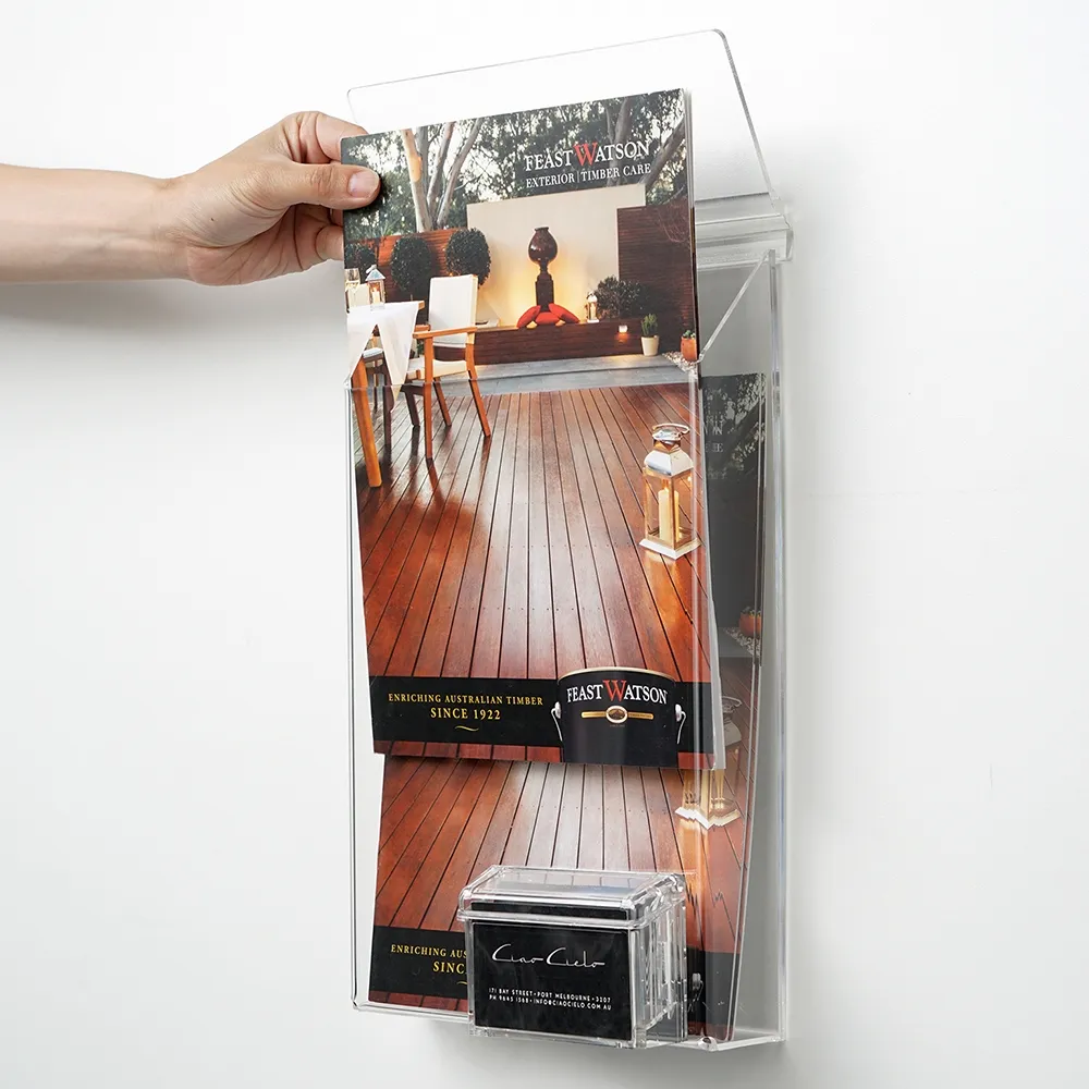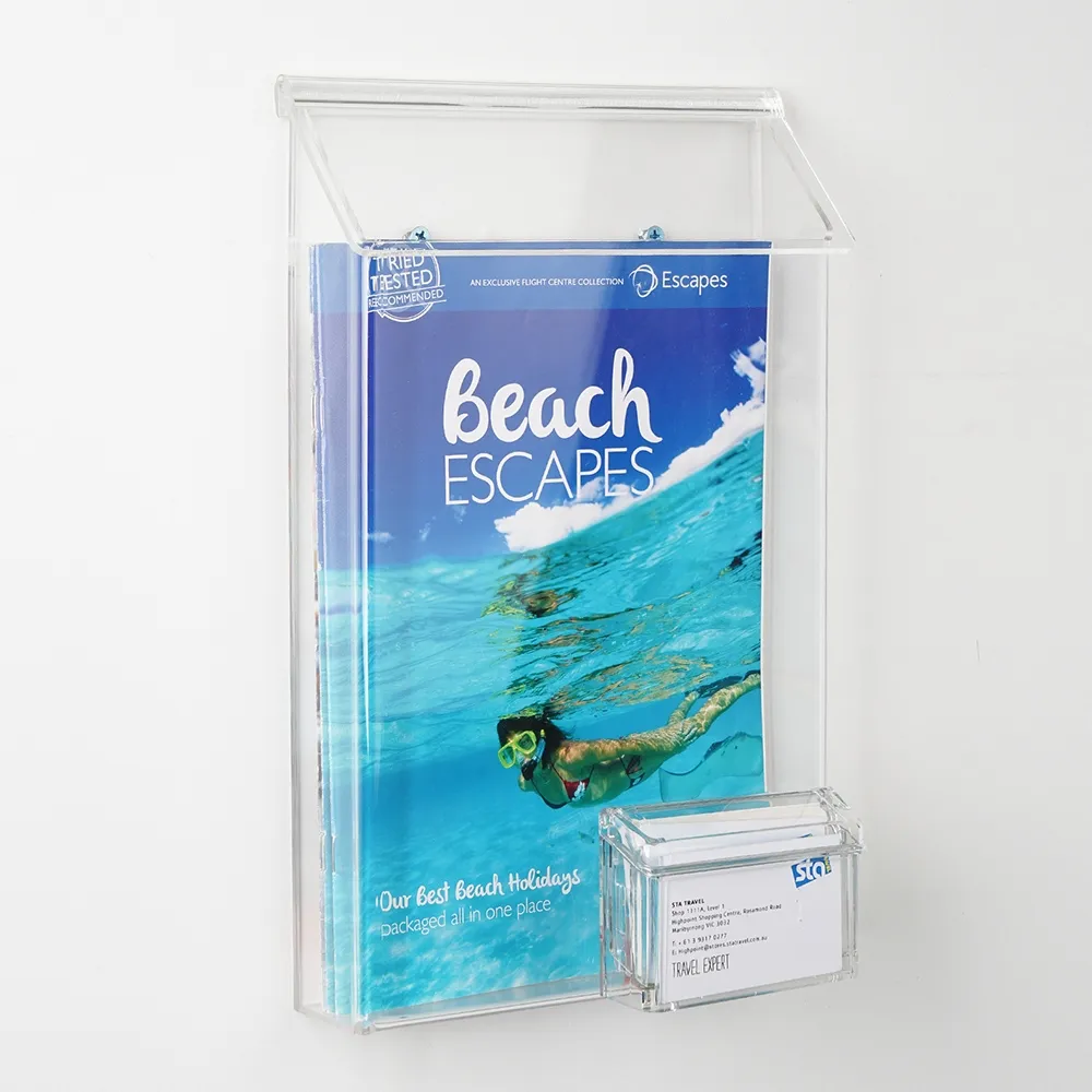 - Flip-top lid on both the brochure holder & card holder