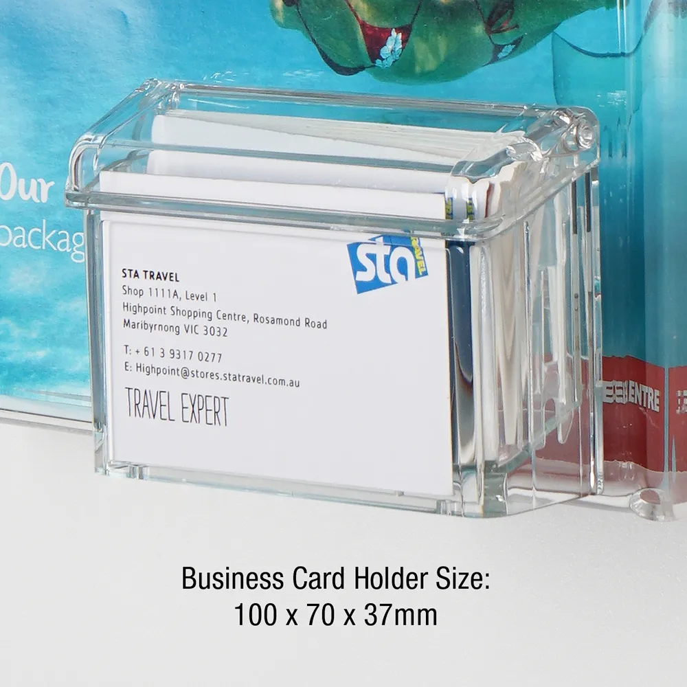 This brochure holder with business card holder is the ultimate display unit with its solid Plexiglas T construction & the dual promoting system works a treat when distributing your pamphlets & contact details to customers.