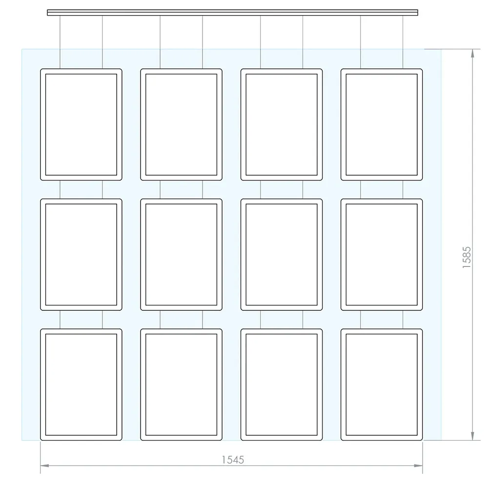 Hanging Lightbox Kit with (12) A3 Dual-Sided Poster Frames in 4 Columns