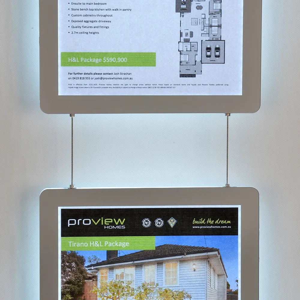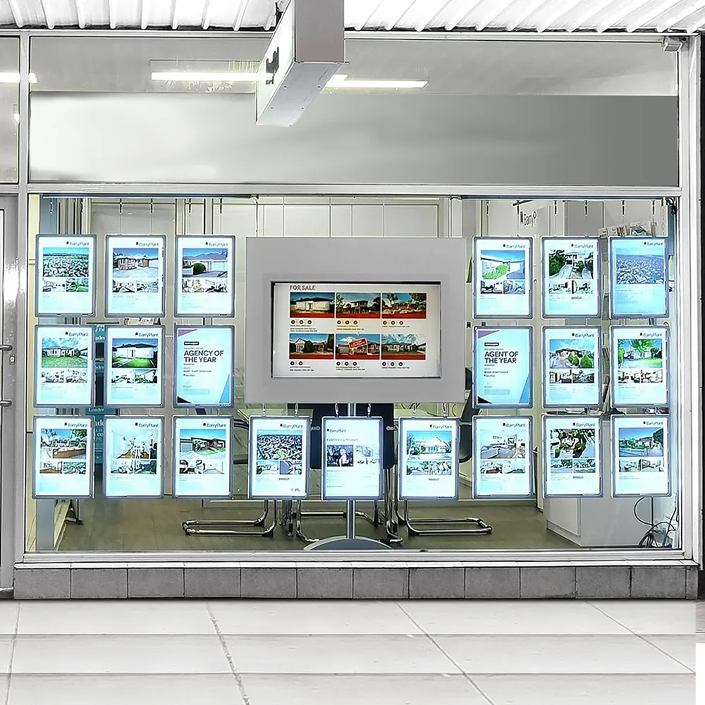• Illuminated real estate window displays are 2-sided to maximise view from single space