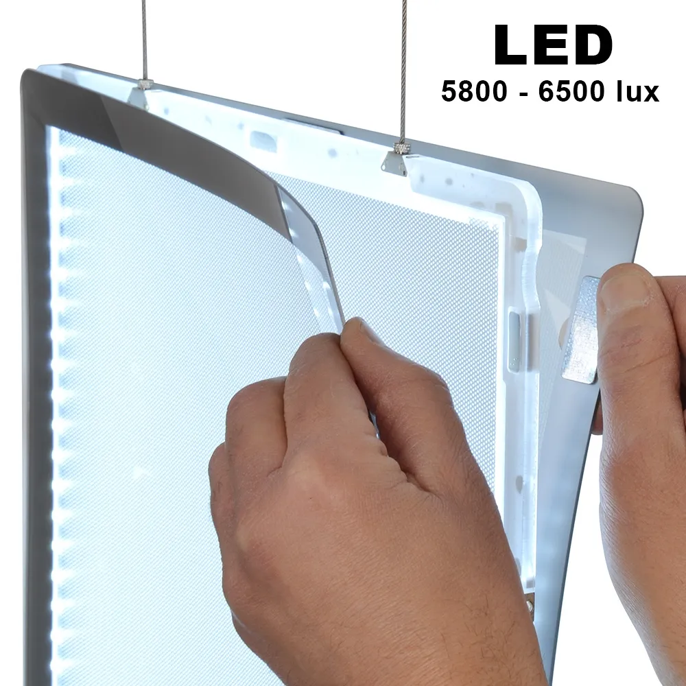 - 5800 – 6500 lux rated LEDs within frames use diffusion pattern to evenly distribute light