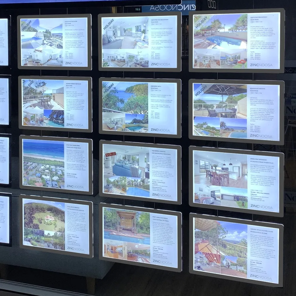 - Real estate window display signs have (12) A4 (210 x 297mm) poster frames included in kit