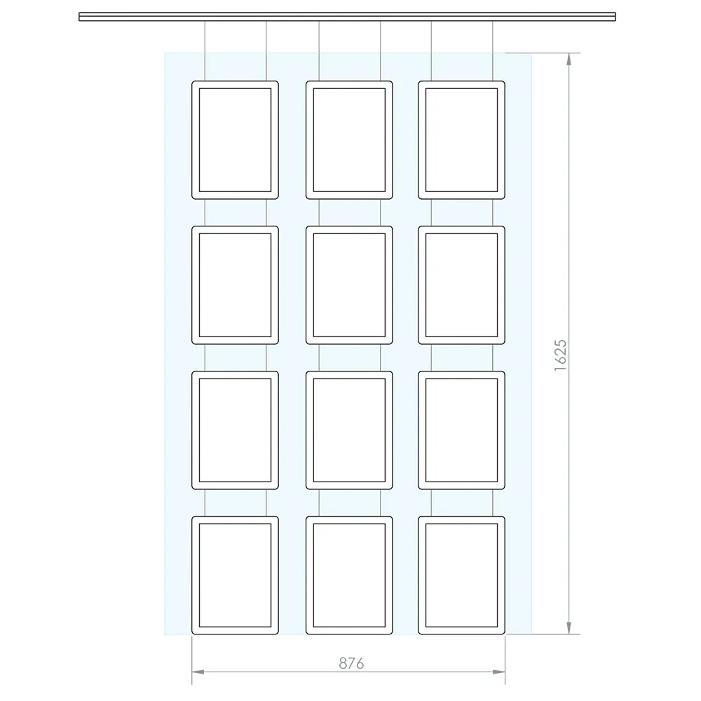 Real estate window display signs create a large grid that has (12) individual poster frames to have a heap of graphics displayed in a single space. These displays are 2-sided to display a total of (24) individual graphics, perfect for property listings, promotional posters, travel getaways, and more. This style can be placed in windows to be visible both inside and outside of a business to maximise display. Each frame is able to hold A4 (210 x 297mm) graphics in portrait or landscape orientation depending on which configuration you need. There are silver bordered front faces that use magnets to attach to the holders securely whilst also ensuring it's easy to change out graphics without tools needed.