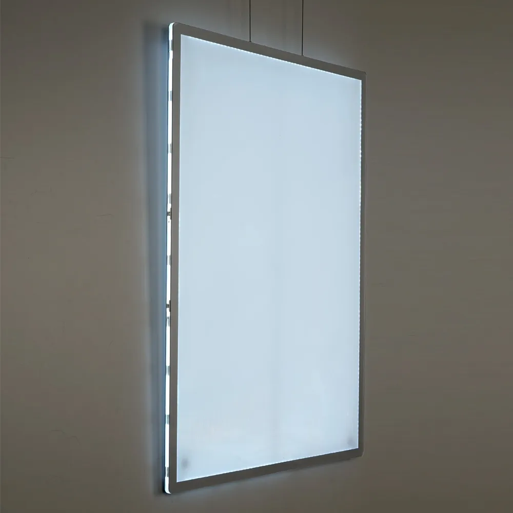 - Illuminated poster frames have a diffusion pattern to evenly distribute 3000 – 3500 lux