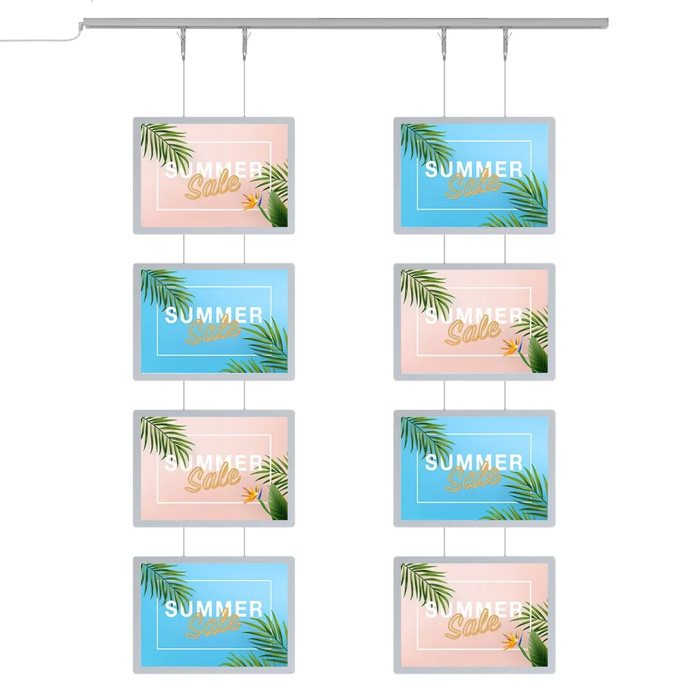 - LED window display has (8) A3 (420 x 297mm) poster holders that hang in portrait or landscape