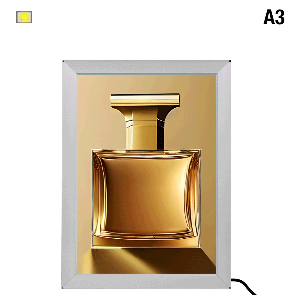 Invest in your displays with one of our modern A3 LED light boxes. The light emitted from this slimline light box is powered by LED’s which use less voltage and energy than most other light sources while still giving you a bright display that is good for the environment.