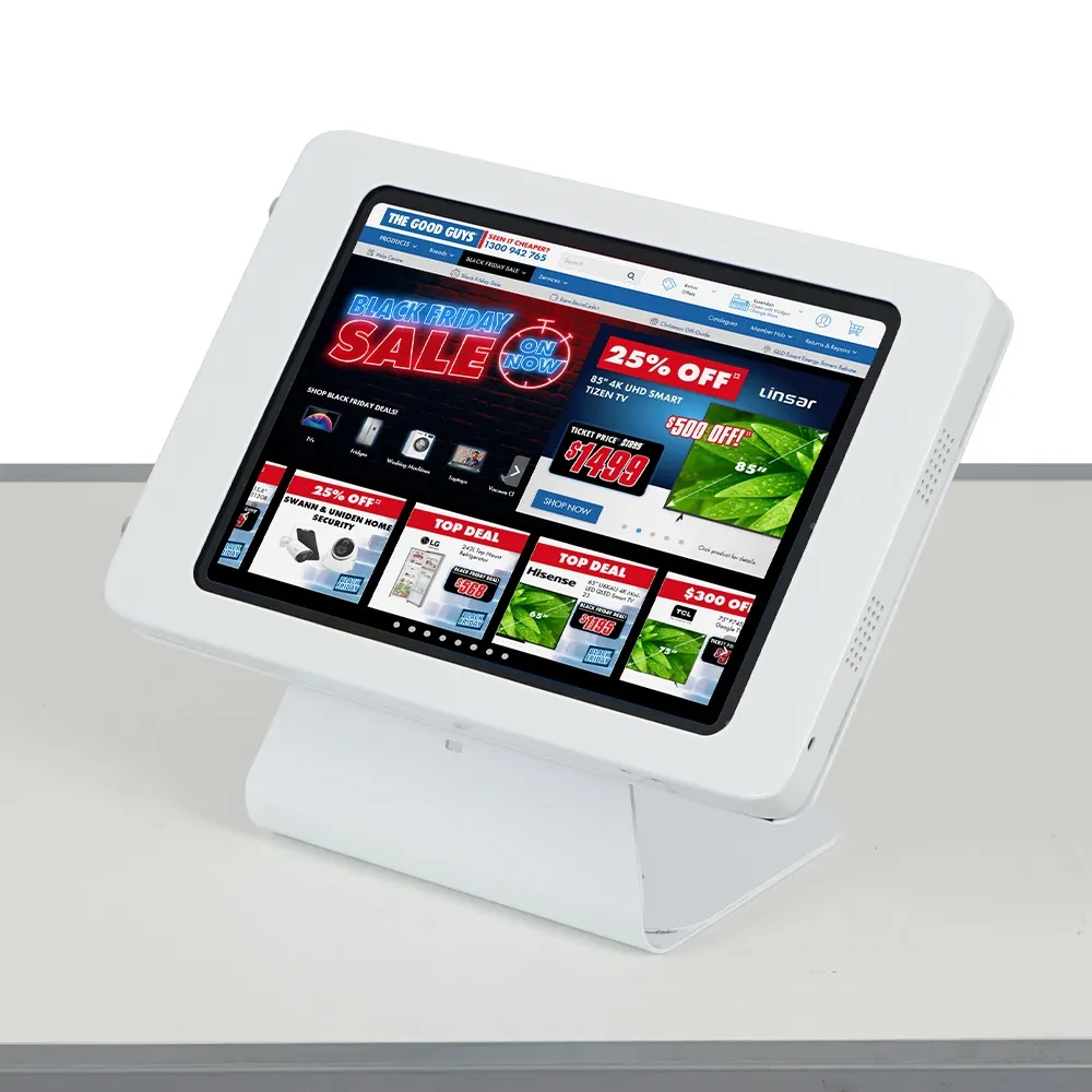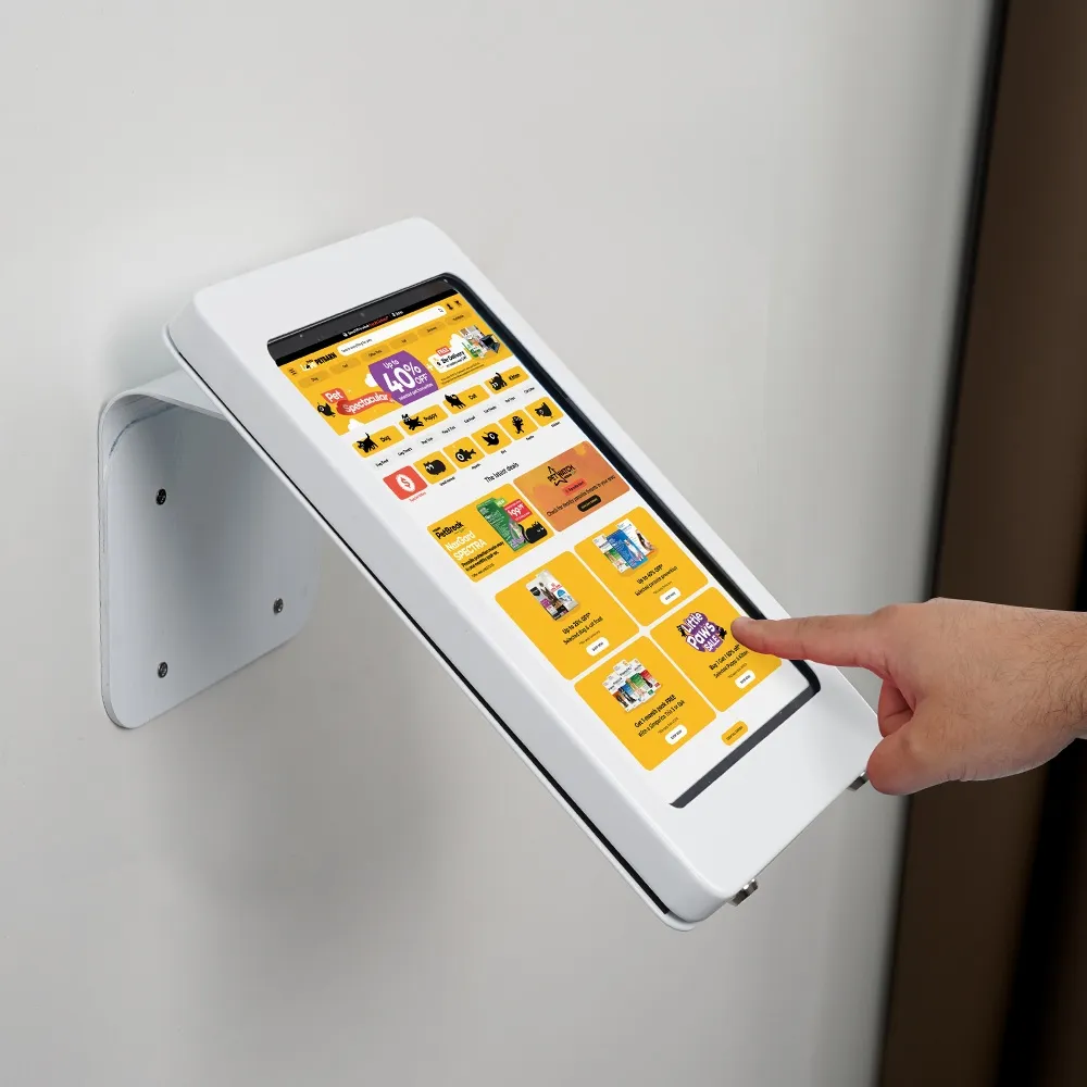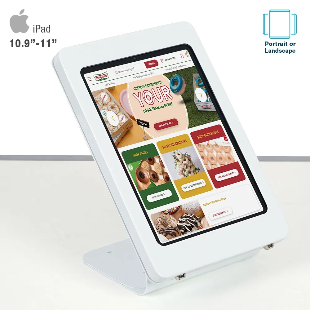 - Secure tablet wall mount displays in landscape on walls or portrait/landscape on counter-tops