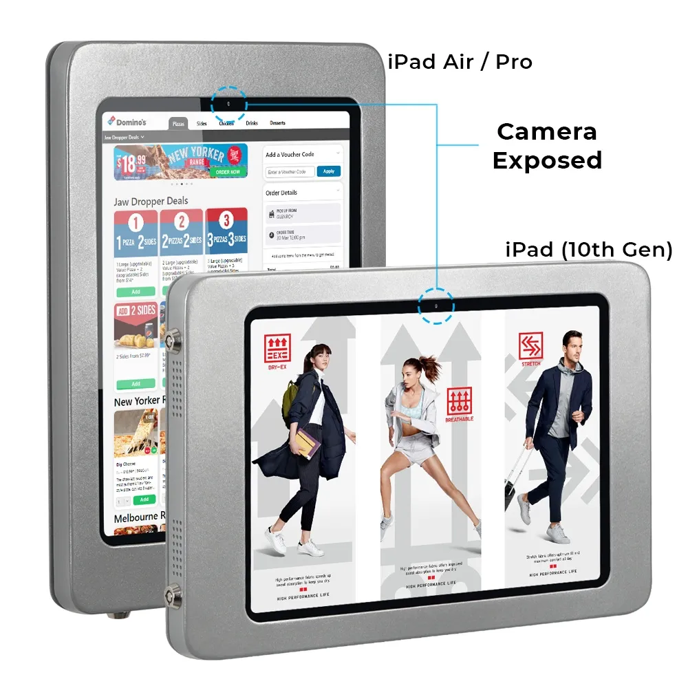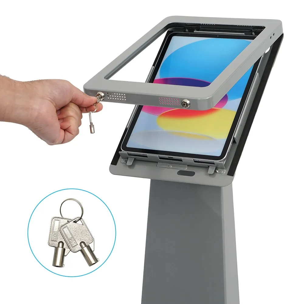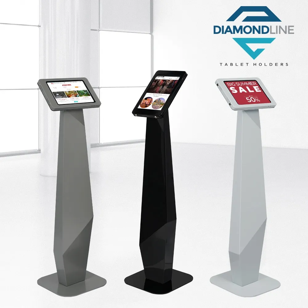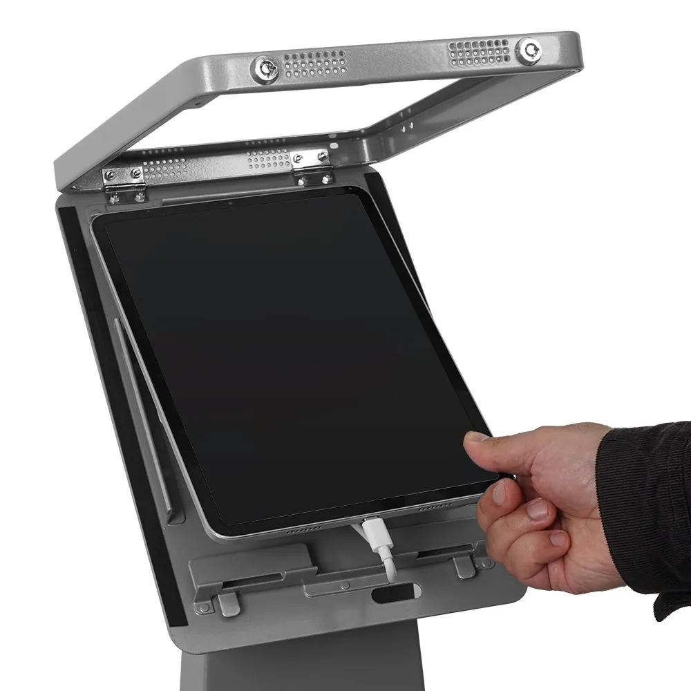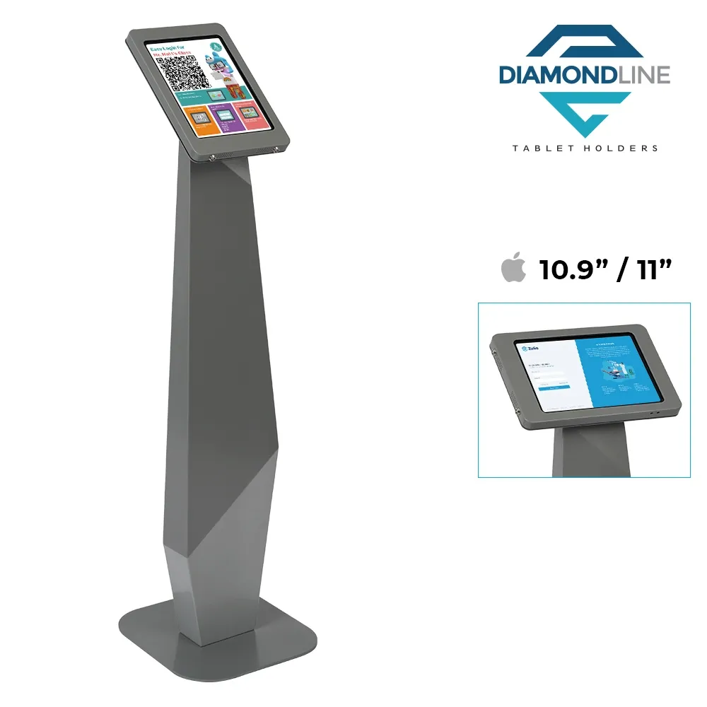 Use this stand for iPad Pro 11 to create a kiosk in restaurants, hotels, casinos, trade shows, medical offices, shopping centers, and more. The display is designed to hold compatible Apple® iPad Pro, iPad, and iPad Air models listed above. The mount can be placed in portrait or landscape orientation depending on your needs, offering a versatile display that will meet the requirements of different businesses. The home button is covered with this fixture, preventing full access to the device and keeping users on the App that you have pre-loaded. This stand is 1220mm tall, providing easy access for users of different heights without issue.