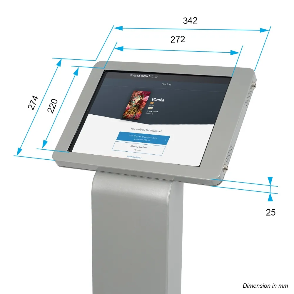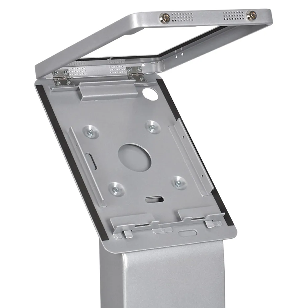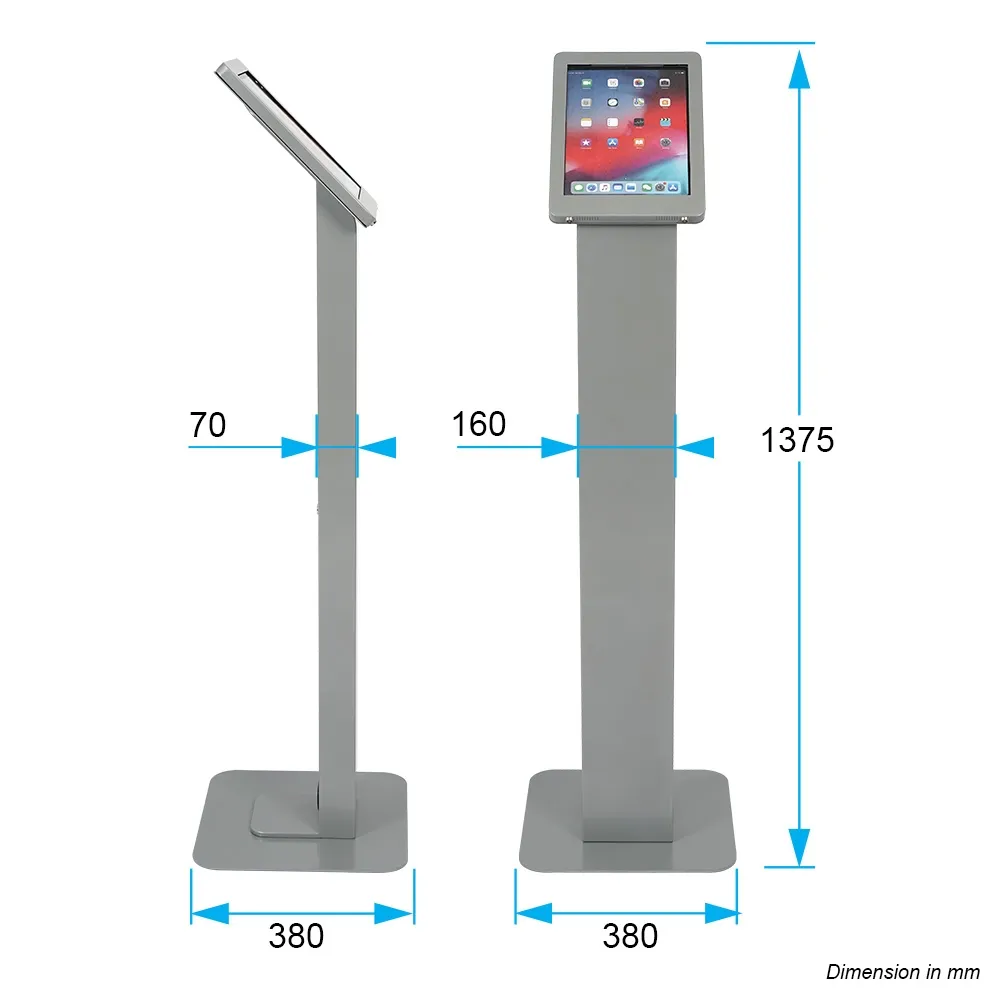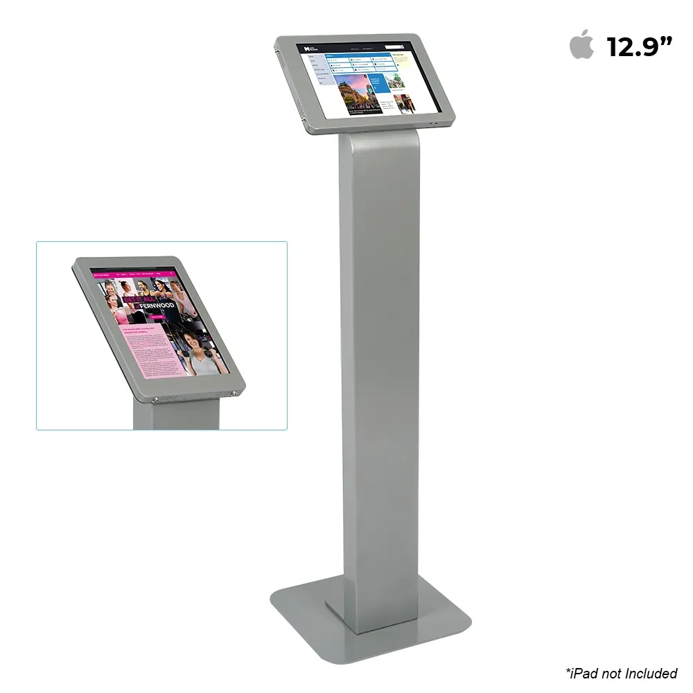 An iPad 12.9 inch stand makes an impression in any location, helping with marketing, patient check-ins, promotional materials, and more. This display is designed to hold Apple® iPad Pro 12.9” 3rd, 4th, 5th & 6th generation, iPad Pro 13" (2024, 2025) & iPad Air 13" (2024, 2025) in either landscape or portrait orientation to fit the needs of your business. The tablet is placed on an angle on top of the unit in order to provide an easy-to-use display for customers. The 1375mm tall unit is perfect for use by visitor of different height. There are four air vents on the display that help to prevent overheating while allowing the speakers to be heard if in use.