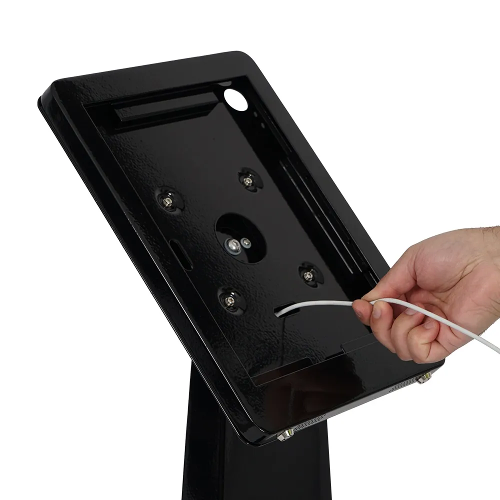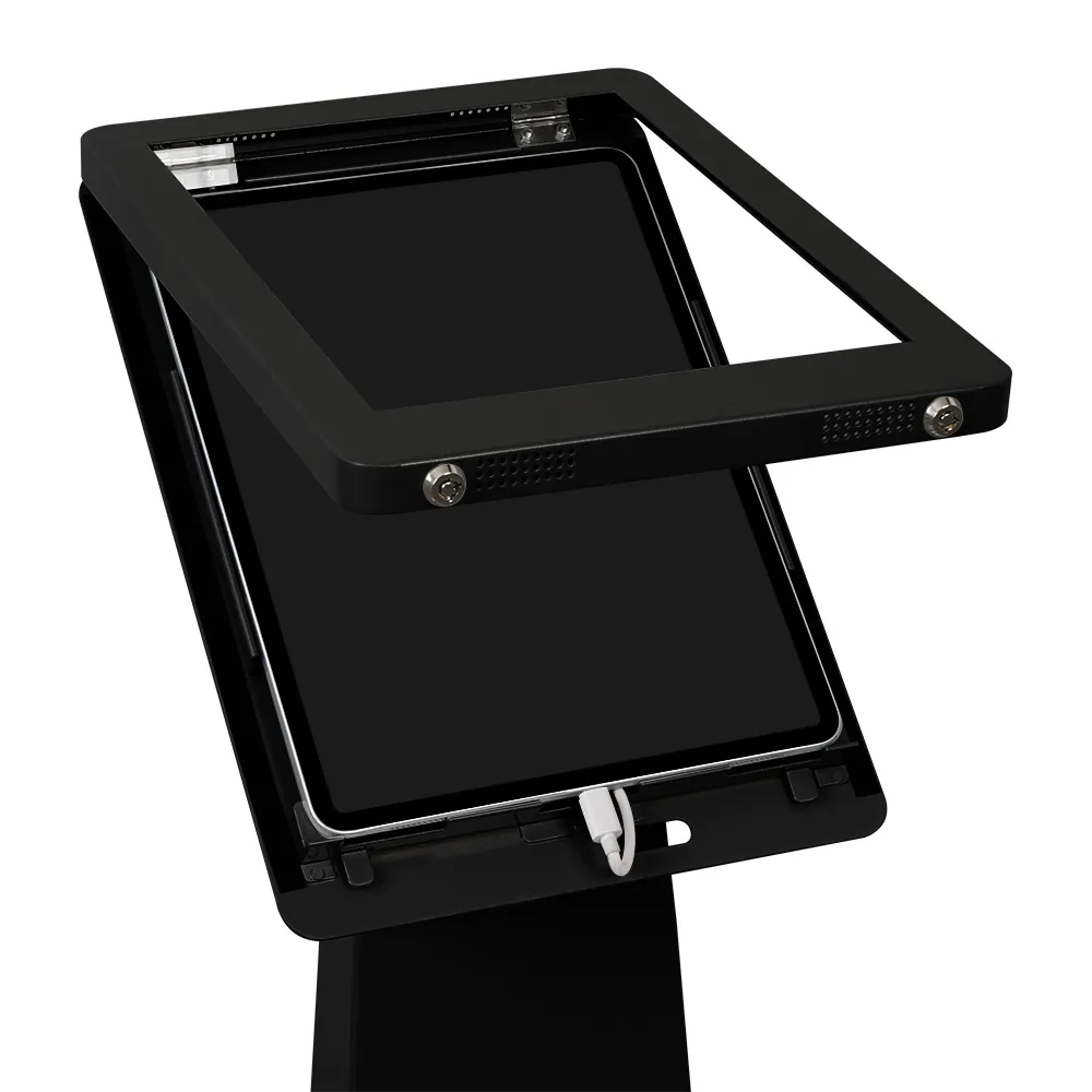 This iPad 12.9 floor stand provides a premium looking display that is great for use as an interactive kiosk in retail stores, shopping centers, casinos, info centres, hotels, waiting rooms, and more. This fixture is able to display Apple® iPad Pro 12.9” 3rd, 4th, 5th & 6th generation, iPad Pro 13" (2024/2025) & iPad Air 13" (2024/2025) in either landscape or portrait format to meet the needs of your business. The home button on the face of the mount is covered to prevent full access to the display and keep users on the App that you loaded onto the screen. The camera is exposed to allow for facial ID as well as create interactive experience depending on how you have your device enabled.
