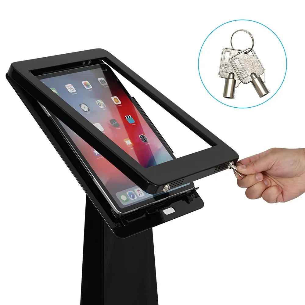- iPad 12.9 floor stand has locking tablet Mount to keep device secure even in public areas